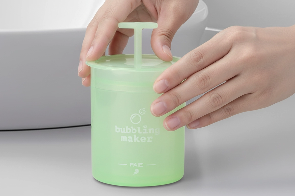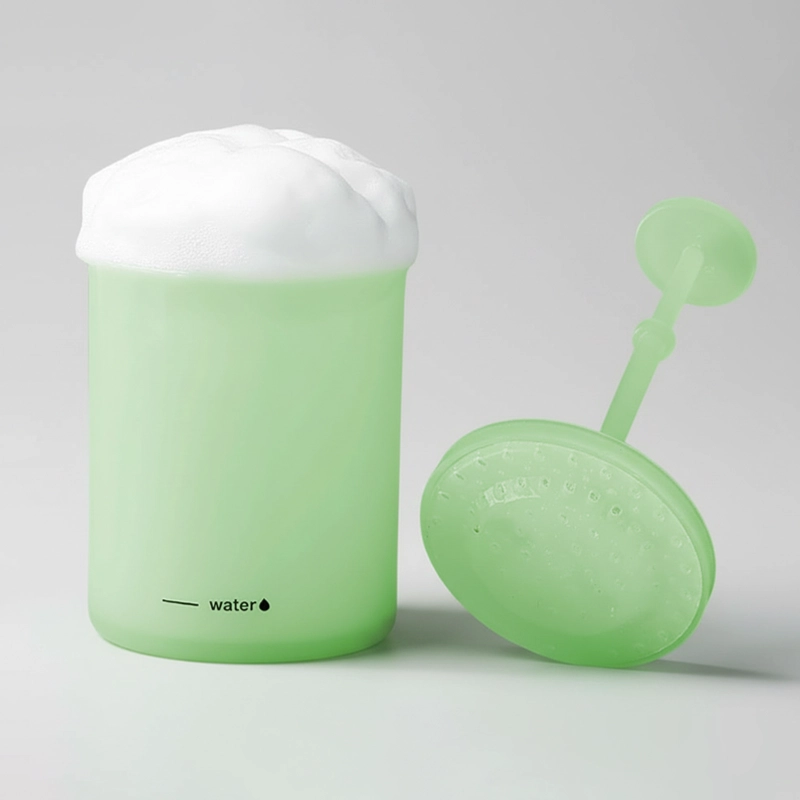 Sempre que uso este pequeno espumador, meu limpador vira nuvens macias de espuma. Torna lavar o rosto muito mais relaxante.