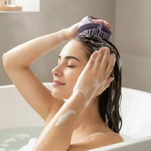 Esse massageador é incrível. Suave na minha pele sensível, mas ainda assim faz o shampoo chegar até a raiz. O banho fica muito mais relaxante.