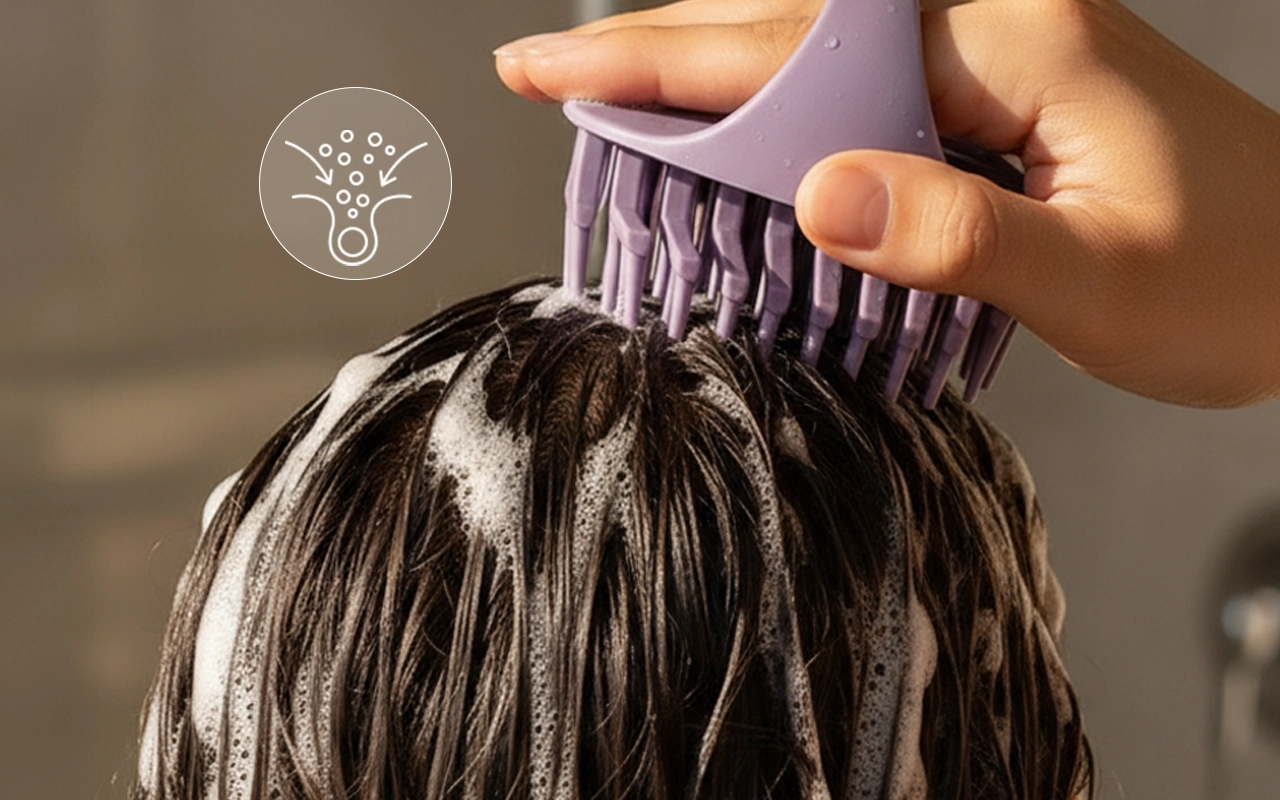 Cerdas macias aliviam a tensão sem arranhar as áreas delicadas. Cada lavagem se torna relaxante e calmante para sua cabeça.