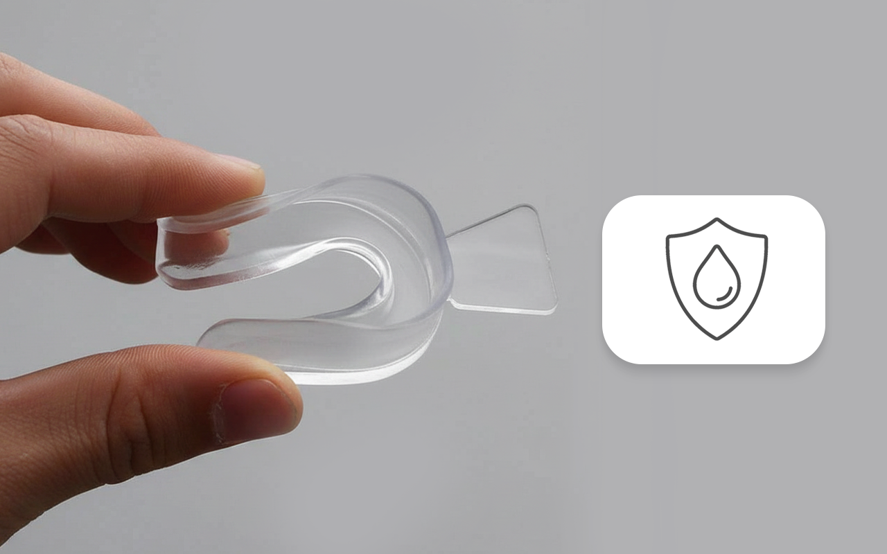 O silicone macio mantém as gengivas protegidas contra géis clareadores fortes. A alta transparência permite fácil monitoramento, garantindo um resultado profissional.