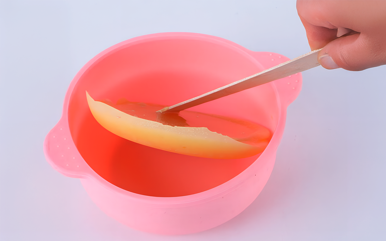 O silicone flexível permite remover a cera em segundos após o resfriamento. Basta enxaguar e reutilizar, mantendo sempre tudo fresco e higiênico.