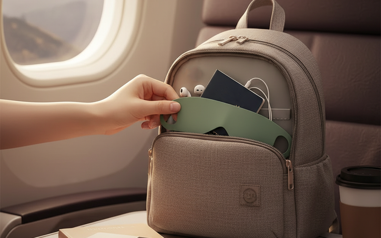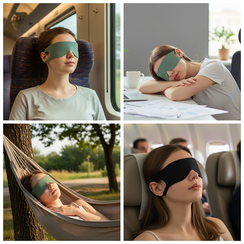 Coloque a máscara em qualquer bolsa ou bolso para usá-la instantaneamente. Durma tranquilo em aviões, trens ou quartos de hotel barulhentos.