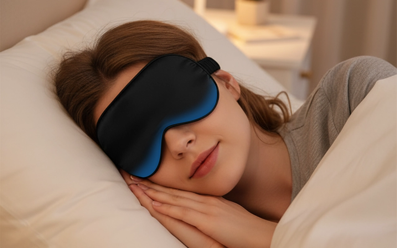 A máscara de algodão é super macia e bloqueia toda a luz. É fácil de usar a noite toda e me ajuda a ter o melhor sono.