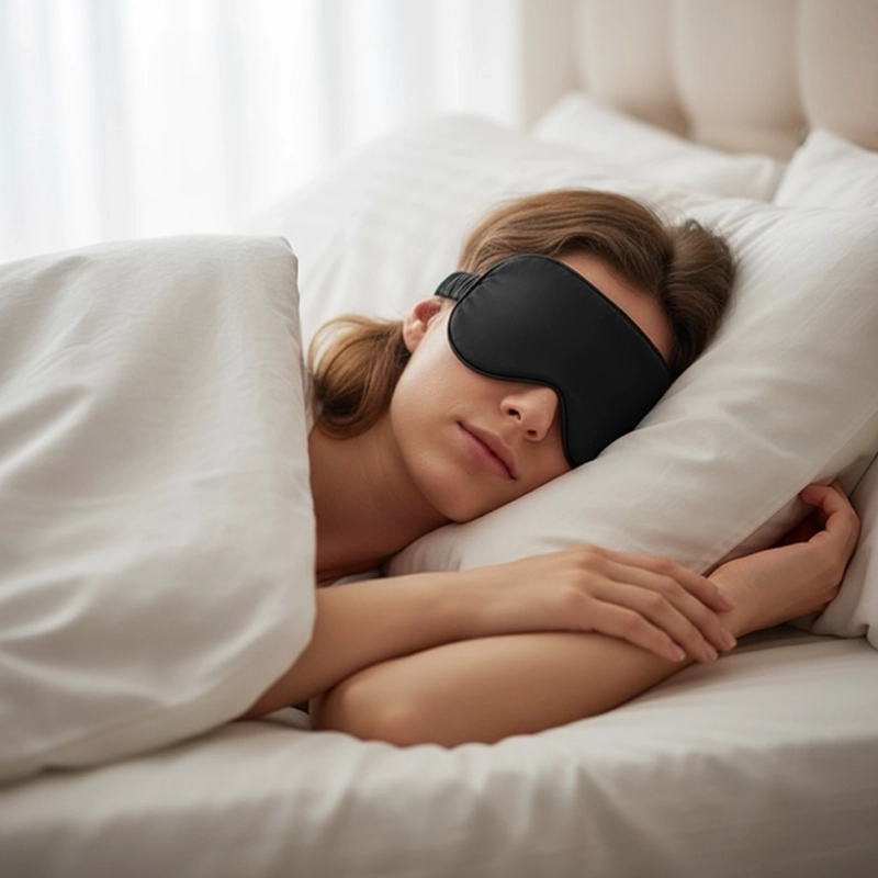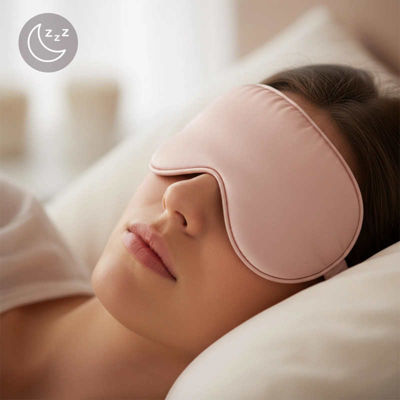 A máscara de algodão é super macia e bloqueia toda a luz. É fácil de usar a noite toda e me ajuda a ter o melhor sono.