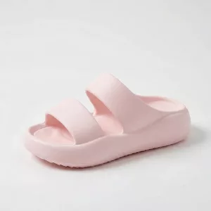 Comprei estes chinelos de praia para as férias, mas agora uso em todo lugar. São macios, elásticos e a aderência me mantém firme em azulejos molhados.