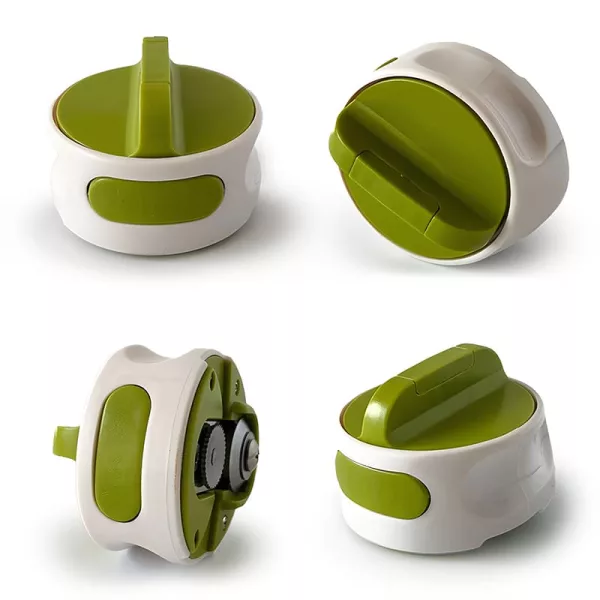 A alça confortável evita escorregões ao girar cada tampa. Crianças e adultos acham simples e sem estresse.
