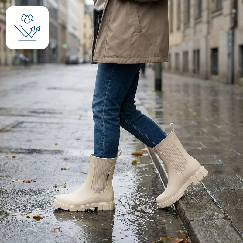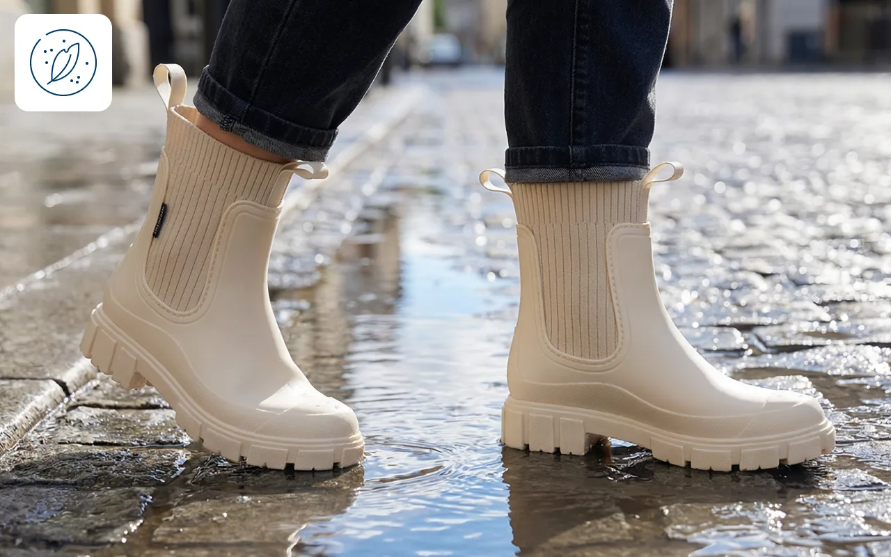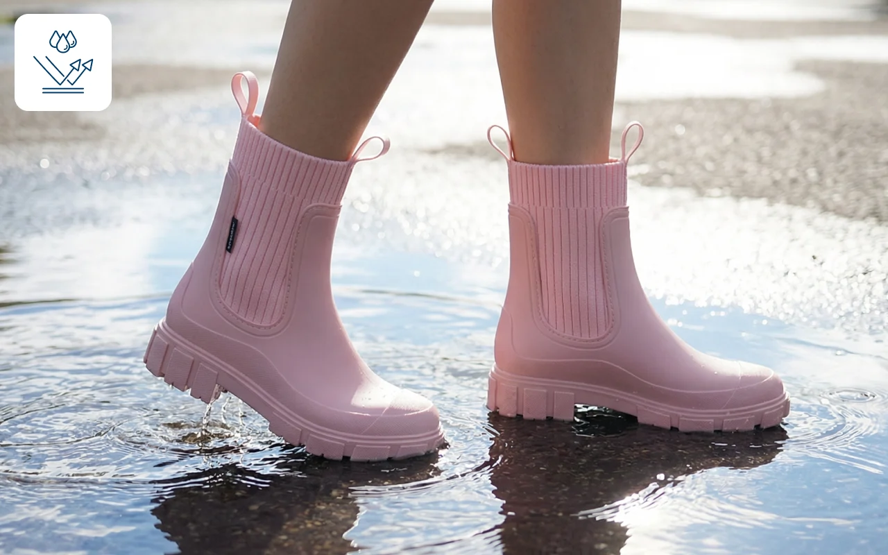 A chuva fica do lado de fora enquanto seus pés permanecem quentes e frescos. Saia de casa mesmo quando as ruas estiverem cheias de poças.