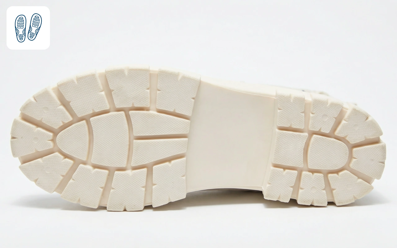 Calçadas escorregadias não são páreo para o solado resistente. Caminhe com confiança sabendo que cada passo é firme e seguro.