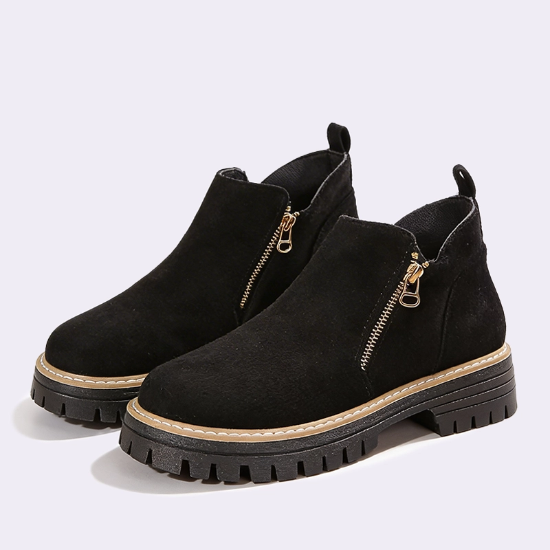 Interior macio, bom solado antiderrapante. O zíper deixa as manhãs mais rápidas.
