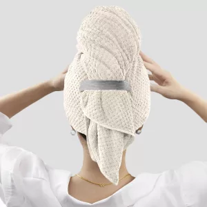 A microfibra é incrível—suave na minha cabeça e meu cabelo seca super rápido! Nunca mais partes ensopadas ou toalhas pesadas caindo. Não quero outra coisa.