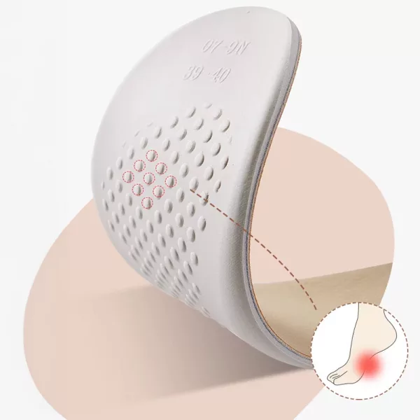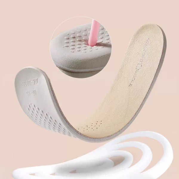A parte inferior antiderrapante mantém a palmilha firmemente no lugar dentro do seu calçado. Isso evita movimentos indesejados durante as caminhadas, proporcionando conforto e suporte consistentes.