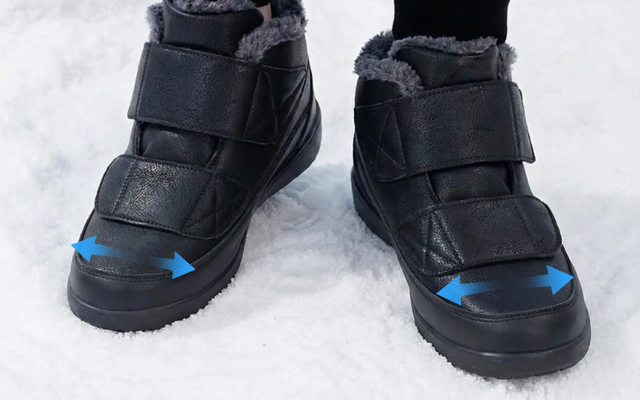 Estes sapatos mantêm meus dedos quentes e confortáveis, mesmo nas manhãs mais frias. Meus pés inchados finalmente cabem sem apertar ou causar pontos doloridos.