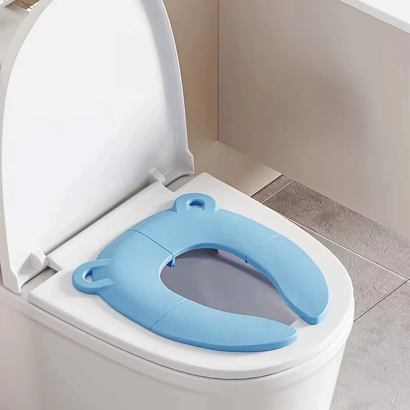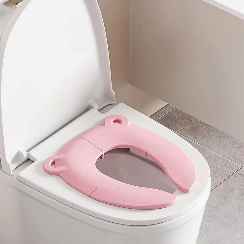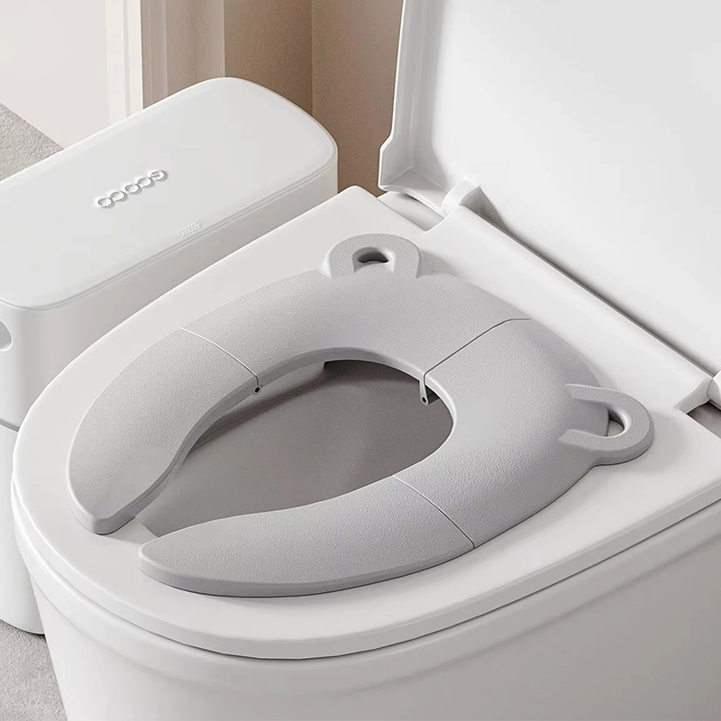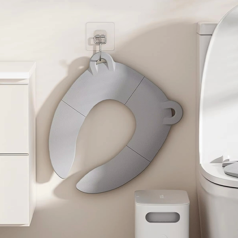 Esse piniquinho dobra e fica pequeno, então posso guardar na bolsa de fraldas. Faz com que banheiros públicos sejam muito menos assustadores para meu pequeno.