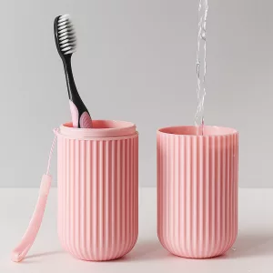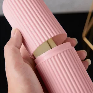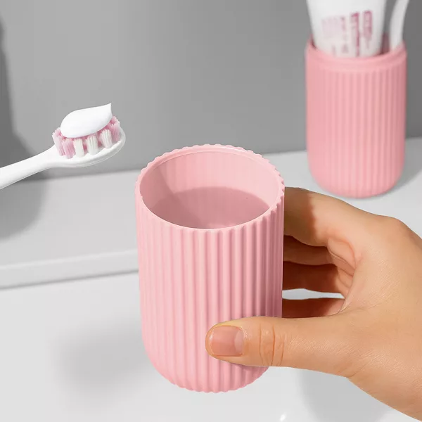 O suporte se transforma em um copo prático para enxaguar após escovar. Torna o cuidado pessoal simples e rápido, mesmo fora de casa.