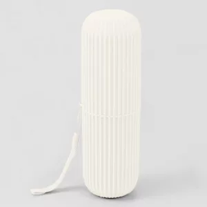 O material impede que germes e sujeira entrem em contato com sua escova ou pasta de dentes.