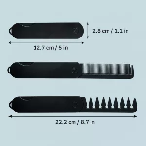Ótimo tamanho para viagens! Fiquei surpreso com a facilidade de cuidar da minha barba e do meu cabelo grosso usando apenas este pente.