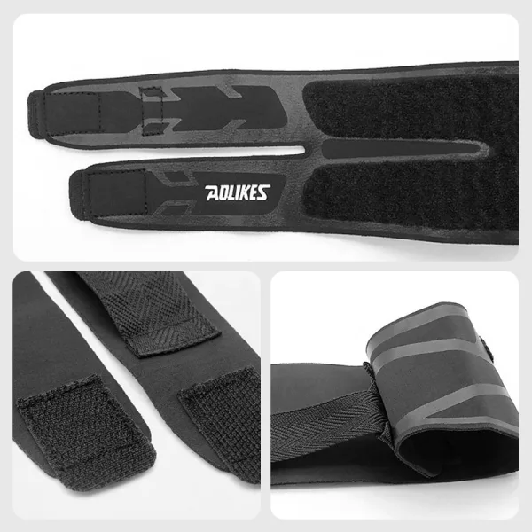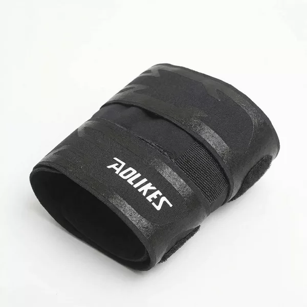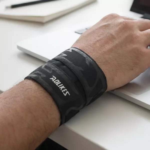 Comecei a usar essa faixa de náilon para cotovelo de tenista e dor no pulso. Ela abraça levemente, fica lisa sob as mangas e me permite balançar o braço livremente na quadra.