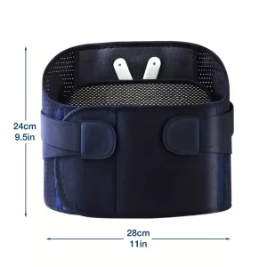 Levo esta faixa lombar para o trabalho e em viagens. É leve, cabe na minha bolsa e o calor com vibração acalma meus nós crônicos nas costas.