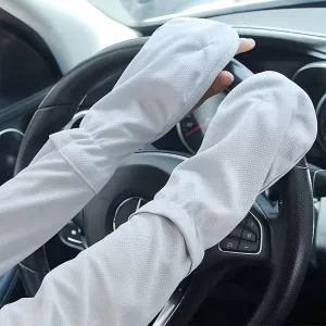Adoro as mangas solares! Elas se ajustam perfeitamente e ficam no lugar. Não tenho mais problemas com suor e me mantêm fresco.