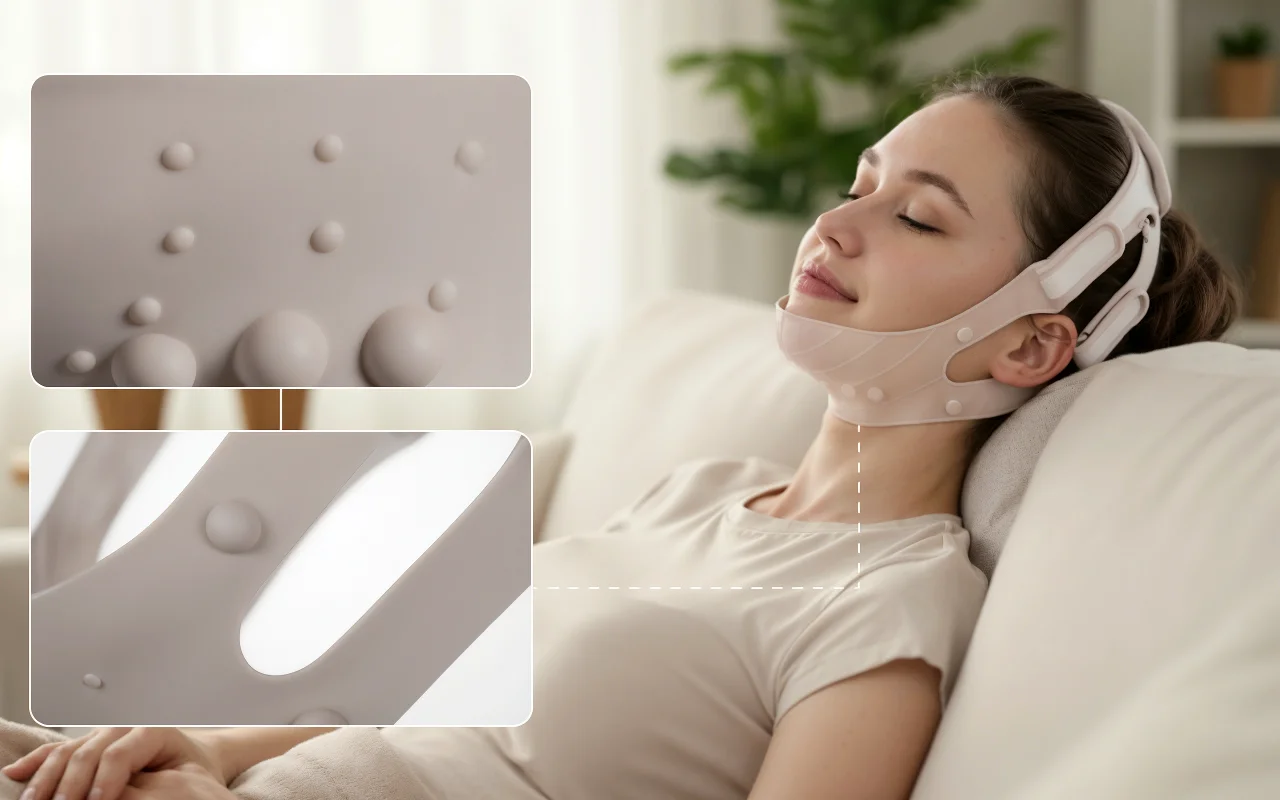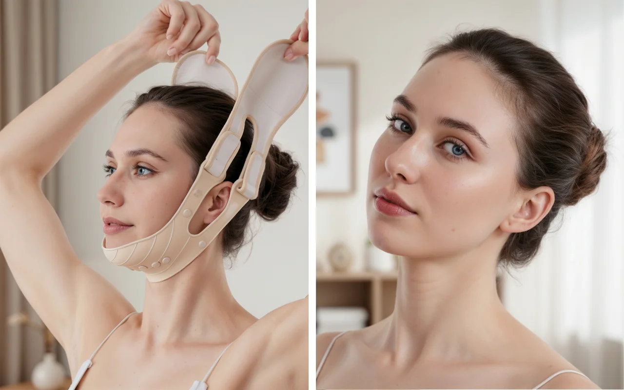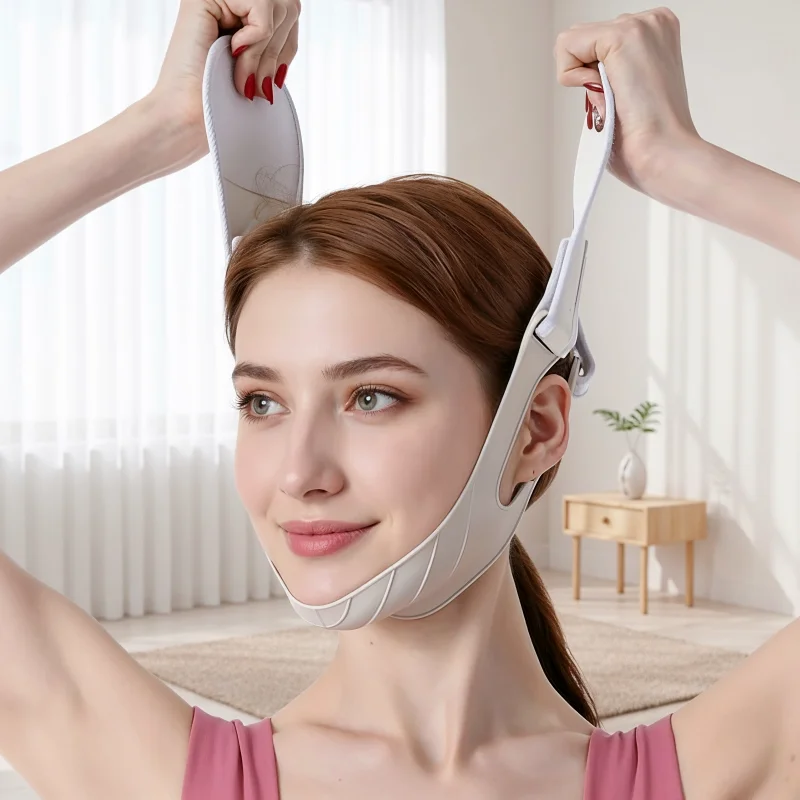 Eu uso esta faixa de levantamento enquanto leio à noite, e a minha linha do maxilar já parece mais definida. Silicone macio, não belisca, e minhas bochechas ficam mais firmes.