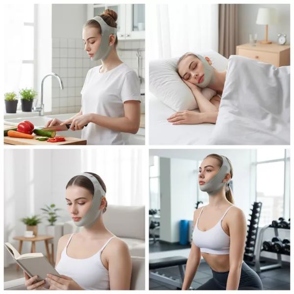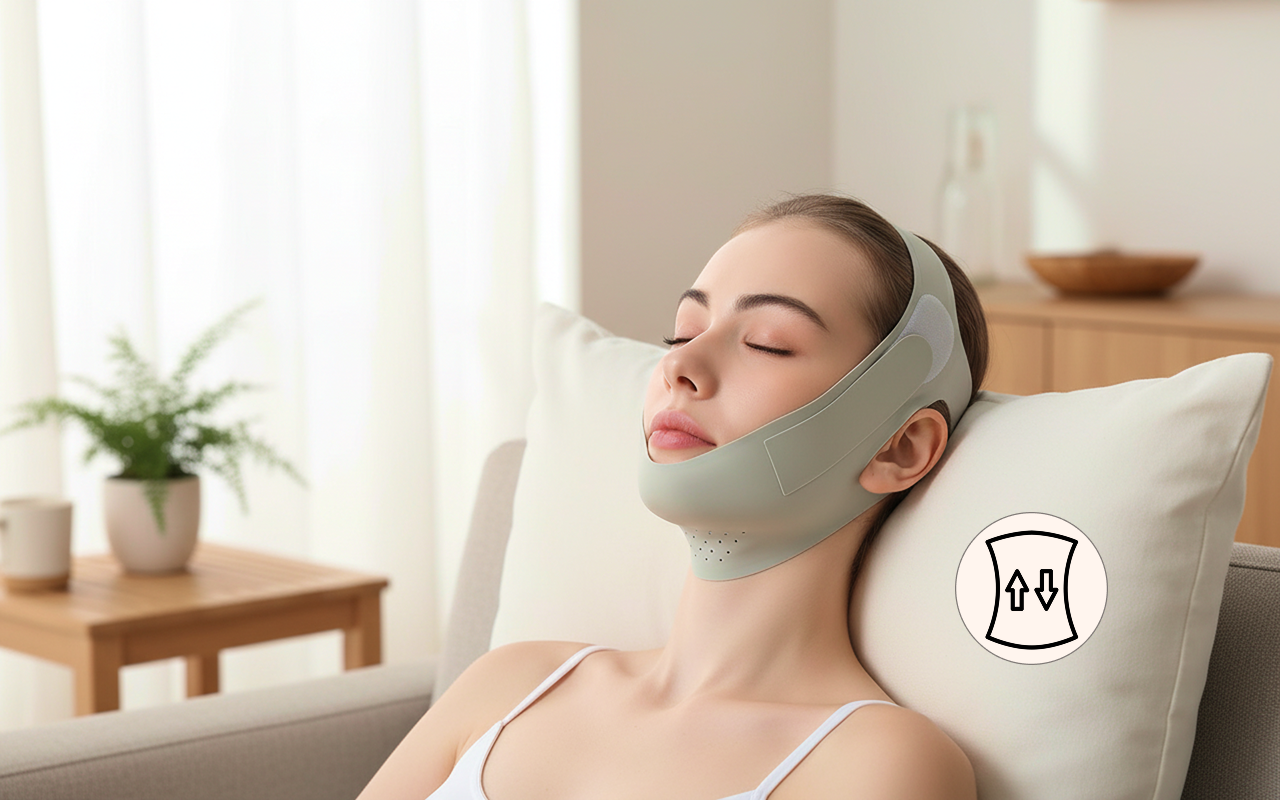 Usar esta faixa para o maxilar à noite é suave e leve. Acordo todas as manhã amando a diferença que vejo no meu rosto.