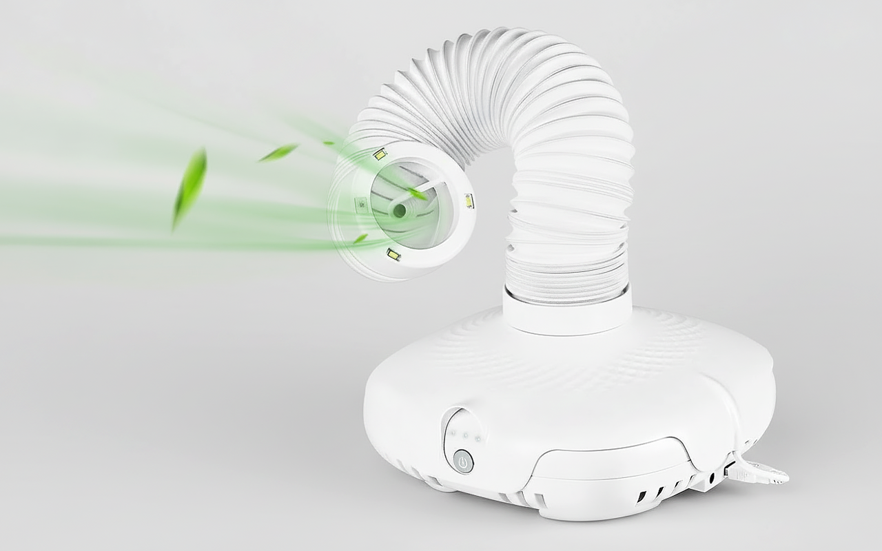 Nunca mais inalo nuvens de pó! Minhas clientes estão super felizes agora. O pescoço ajustável salva minhas costas durante dias longos. E ainda fica estiloso na minha mesa.