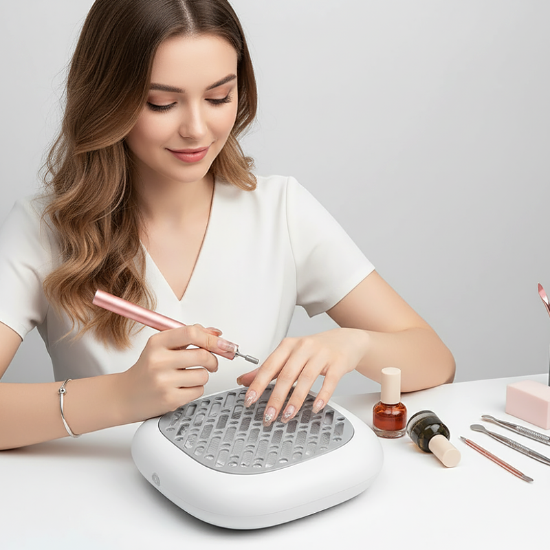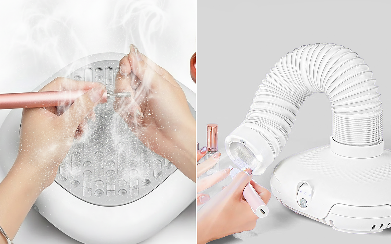 Este aspirador de unhas mantém minha mesa super limpa e não preciso ficar limpando o pó o tempo todo. O tubo dobra facilmente, então nunca fico desconfortável.