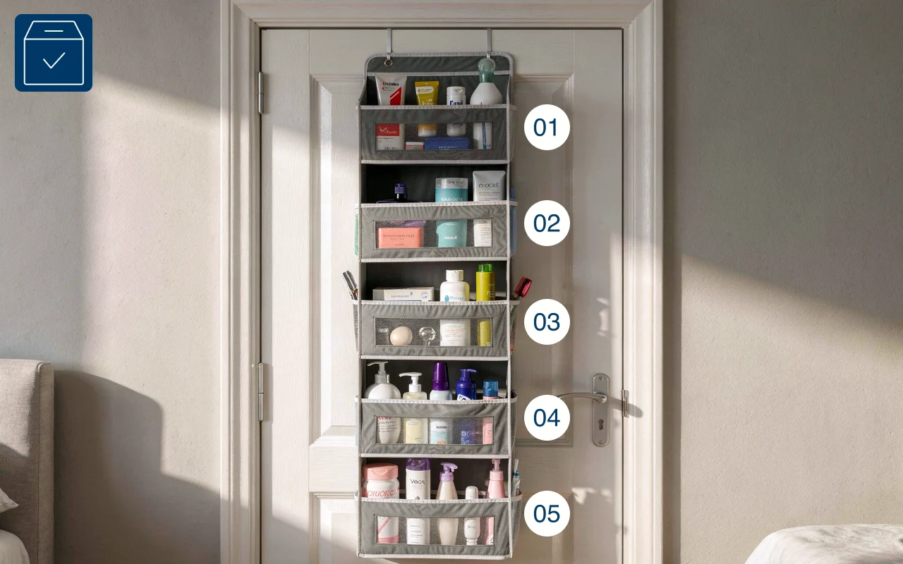 Organize qualquer ambiente rapidamente com esta solução inteligente. A bolsa organizadora Ortorex cabe atrás da maioria das portas, liberando áreas do chão. Mantenha tudo em ordem e encontre facilmente o que precisa sempre. Cada cômodo fica organizado, ajudando você a desfrutar de um ambiente calmo.