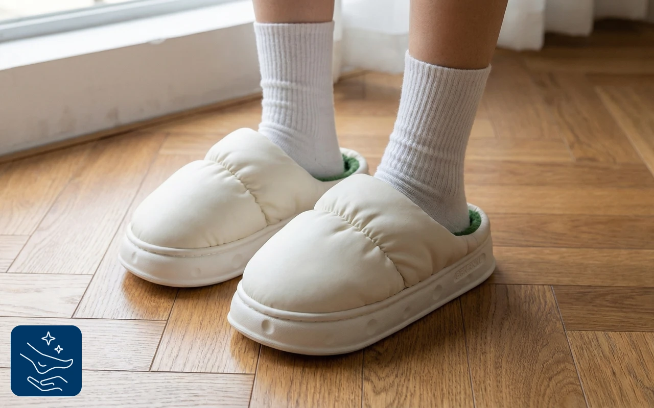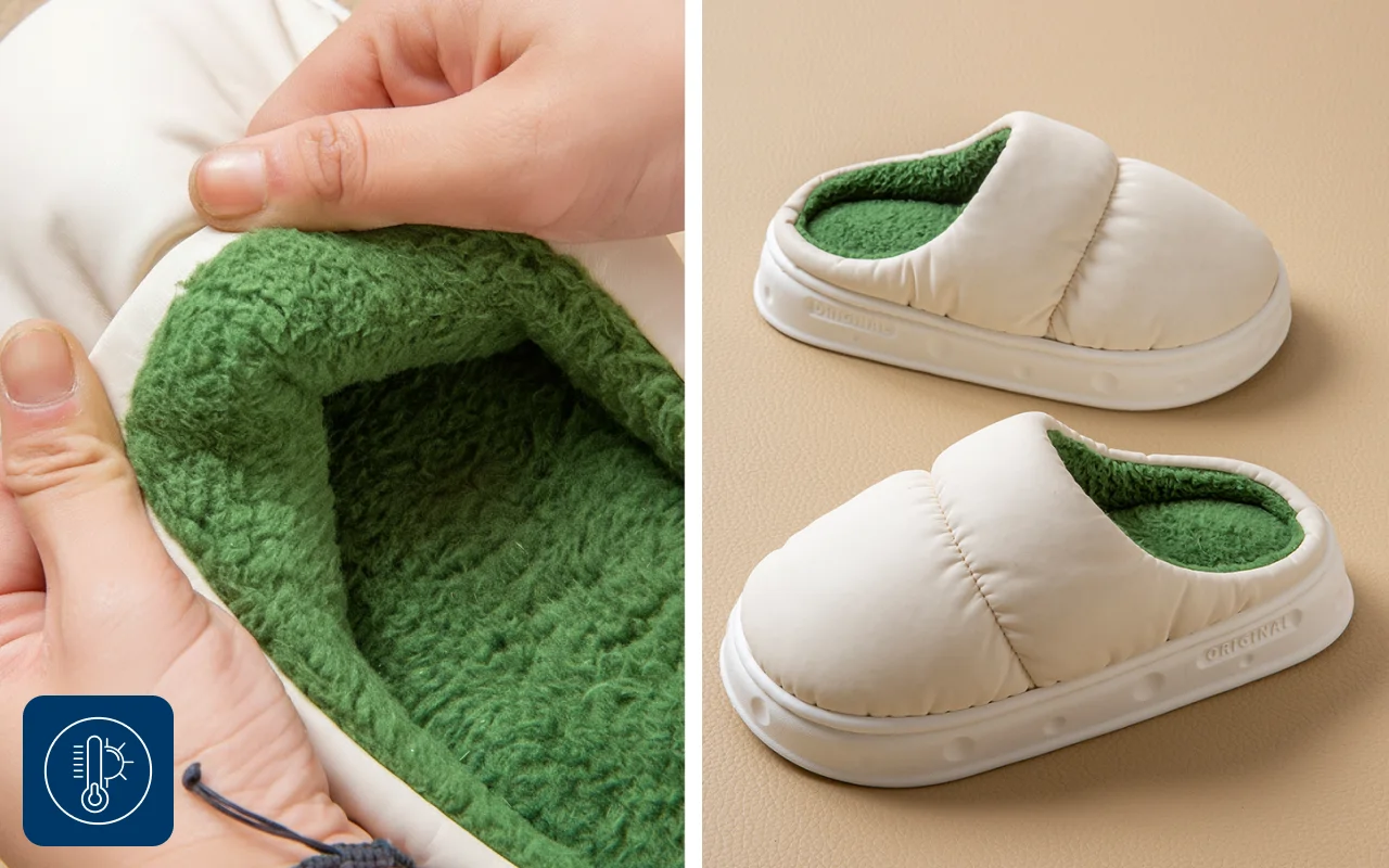 O forro grosso isola os dedos contra superfícies frias dentro de casa. Todas as noites, você desfruta de pés quentinhos mesmo em dias gelados.