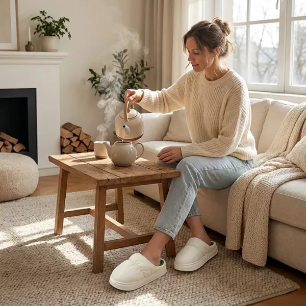 Esses chinelos felpudos são tão aconchegantes e mantêm meus pés super quentes nas manhãs frias. Sem pressão ou aperto, só conforto macio a cada passo.
