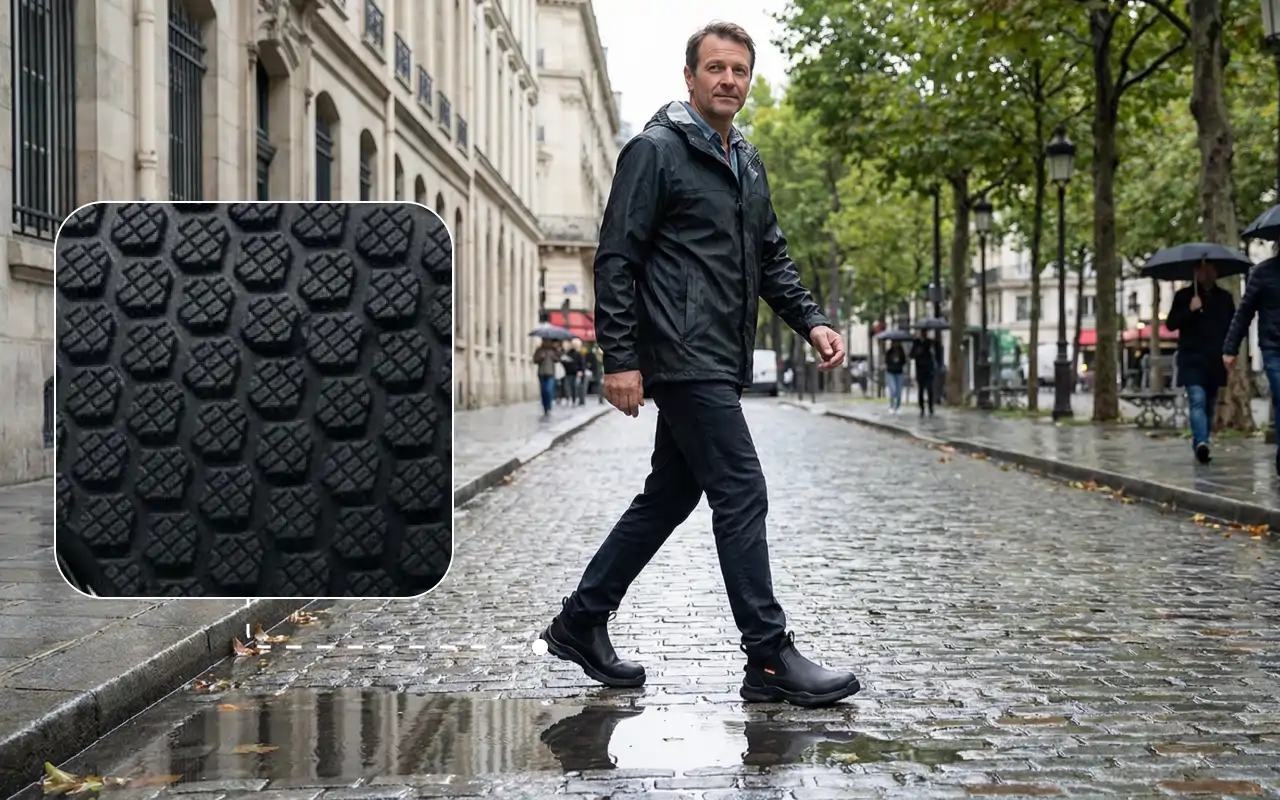 Pisos molhados ou líquidos derramados não causam mais quedas repentinas dentro de casa. Solas confiáveis ajudam a evitar acidentes no trabalho ou em casa.