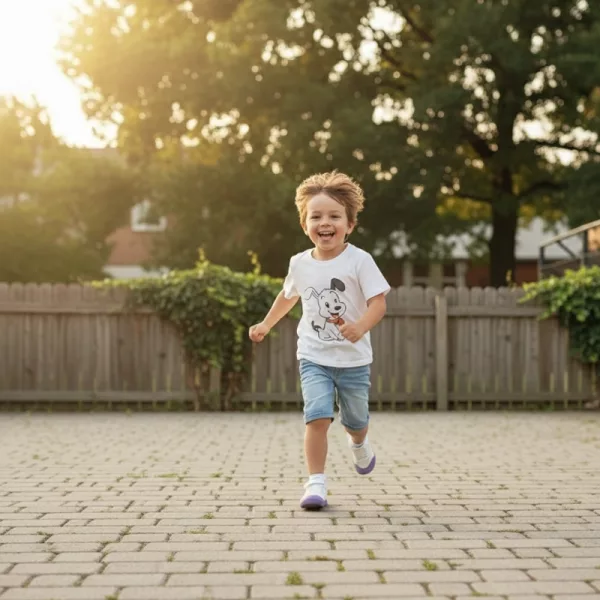 Os pés se espalham livremente, promovendo crescimento saudável e brincadeiras felizes. Estrutura leve ajuda as crianças a se movimentarem facilmente dentro ou fora de casa.
