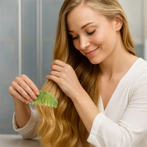 O jade é muito suave e relaxante no couro cabeludo. Uso toda noite e meu cabelo fica arrumado e brilhante sem muito esforço.