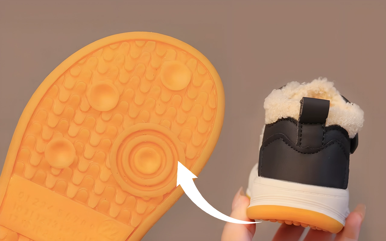Sola antiderrapante apoia correr, pular ou caminhar em caminhos molhados. Pais ficam mais tranquilos ao ver os filhos seguros em qualquer lugar.
