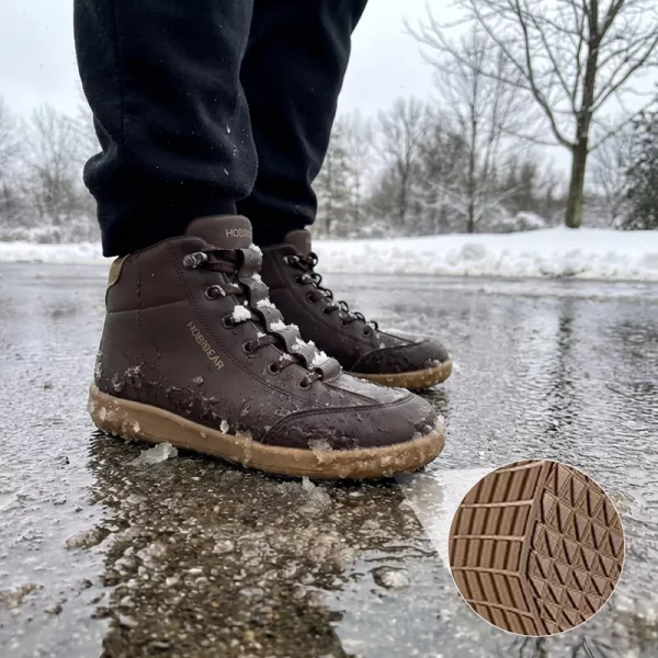 Experimentei os sapatos na rua em calçadas congeladas e me senti seguro o tempo todo. Fico feliz por não tropeçar ou escorregar mais ao passear com meu cachorro.