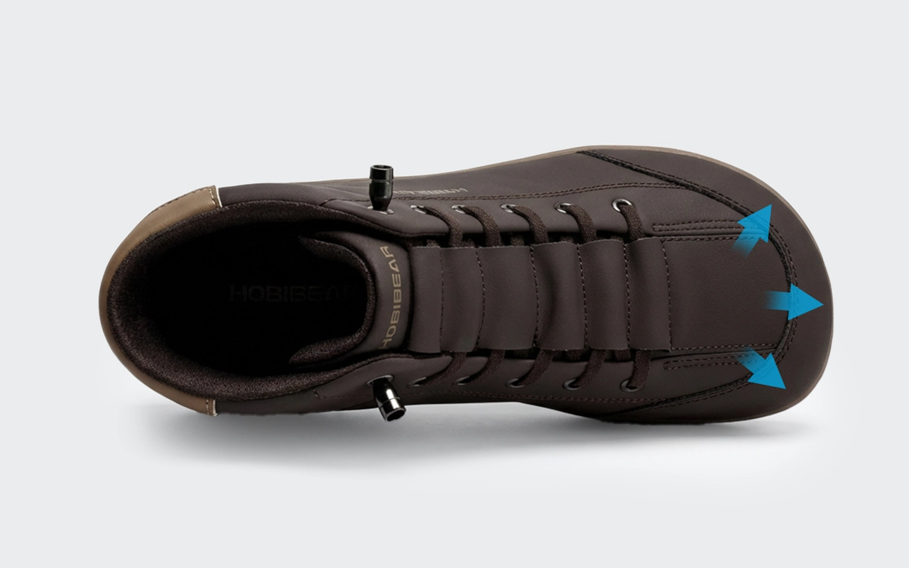 Cada passo é fácil porque os dedos nunca ficam apertados. Você pode caminhar mais longe sem desconforto ou pressão.