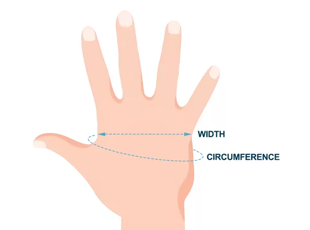 - 1. Estique a fita métrica na parte mais larga da sua palma.
