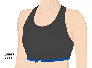 - 2. Para encontrar a medida do contorno abaixo do peito, envolva a fita métrica ao redor da caixa torácica, diretamente e de forma uniforme sob o peito.