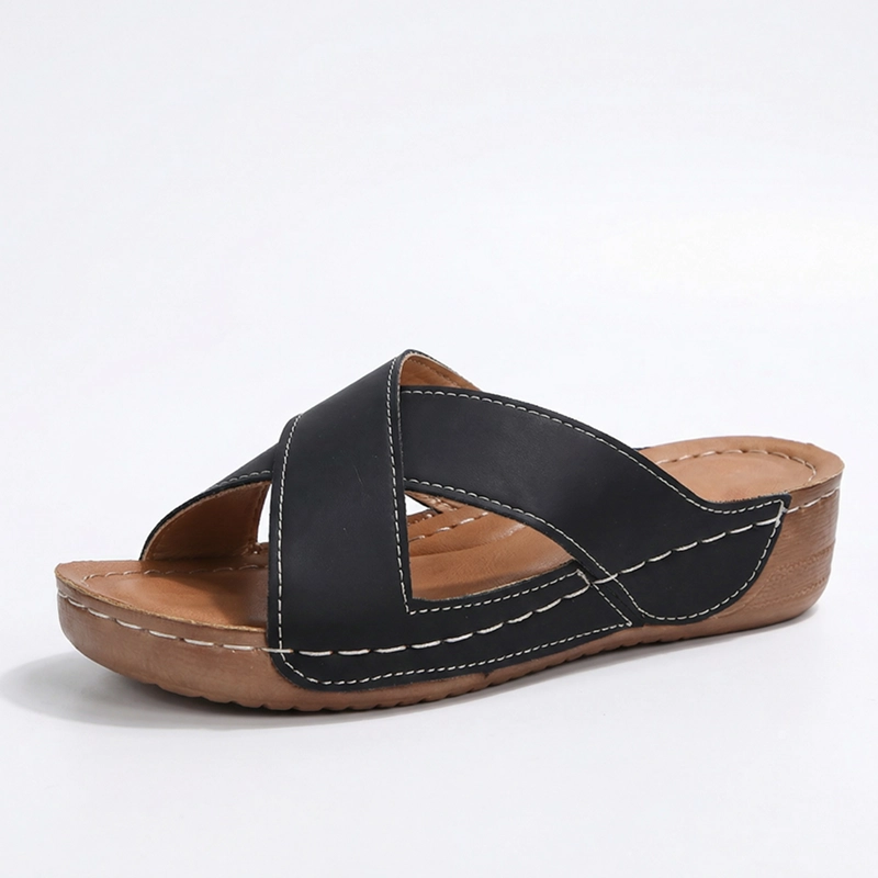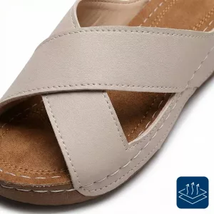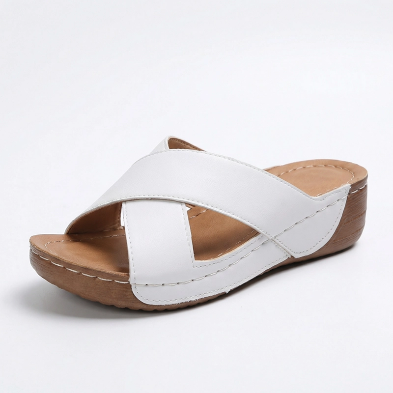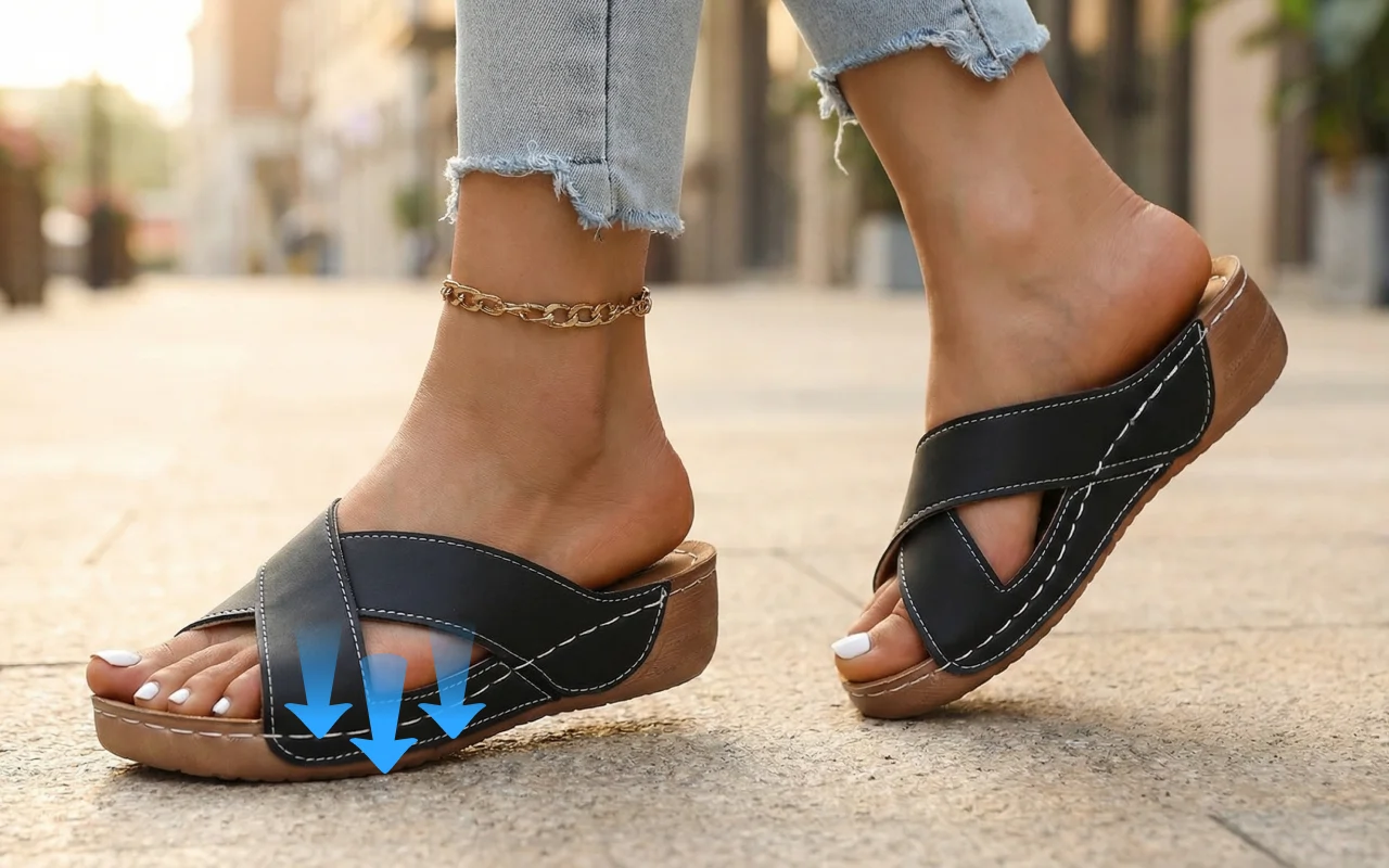 Tenho pés largos e normalmente detesto sandálias, mas estas abraçam suavemente sem apertar. A palmilha macia e a leve elevação deixam minhas caminhadas diárias pelo quarteirão muito mais fáceis.