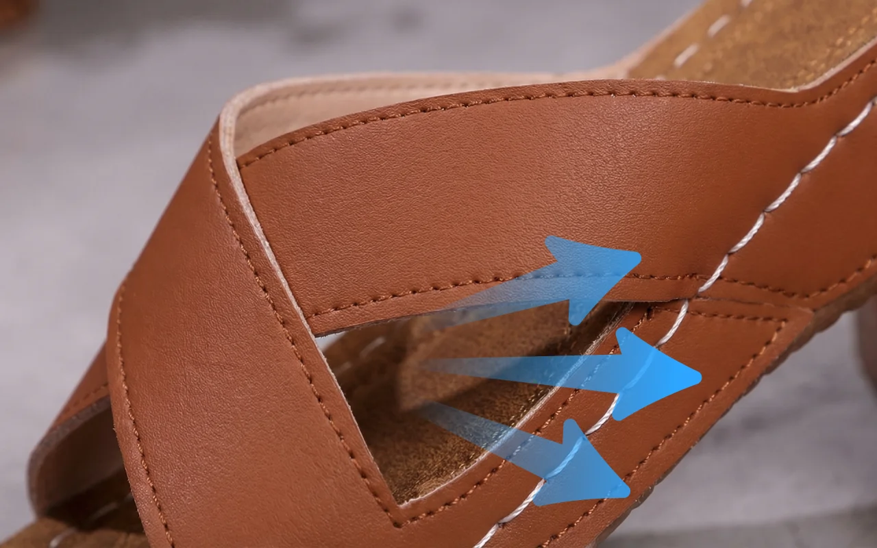 Uso estas em casa no lugar de chinelos e meus pés ficam apoiados sem esquentar. O design aberto deixa o ar entrar e a sola é firme, mas ao mesmo tempo macia.