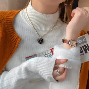 O suéter de tricô é meu favorito para dias frios! Me mantém bem quentinha o dia todo e nunca pinica na pele. Muito fácil de combinar também.