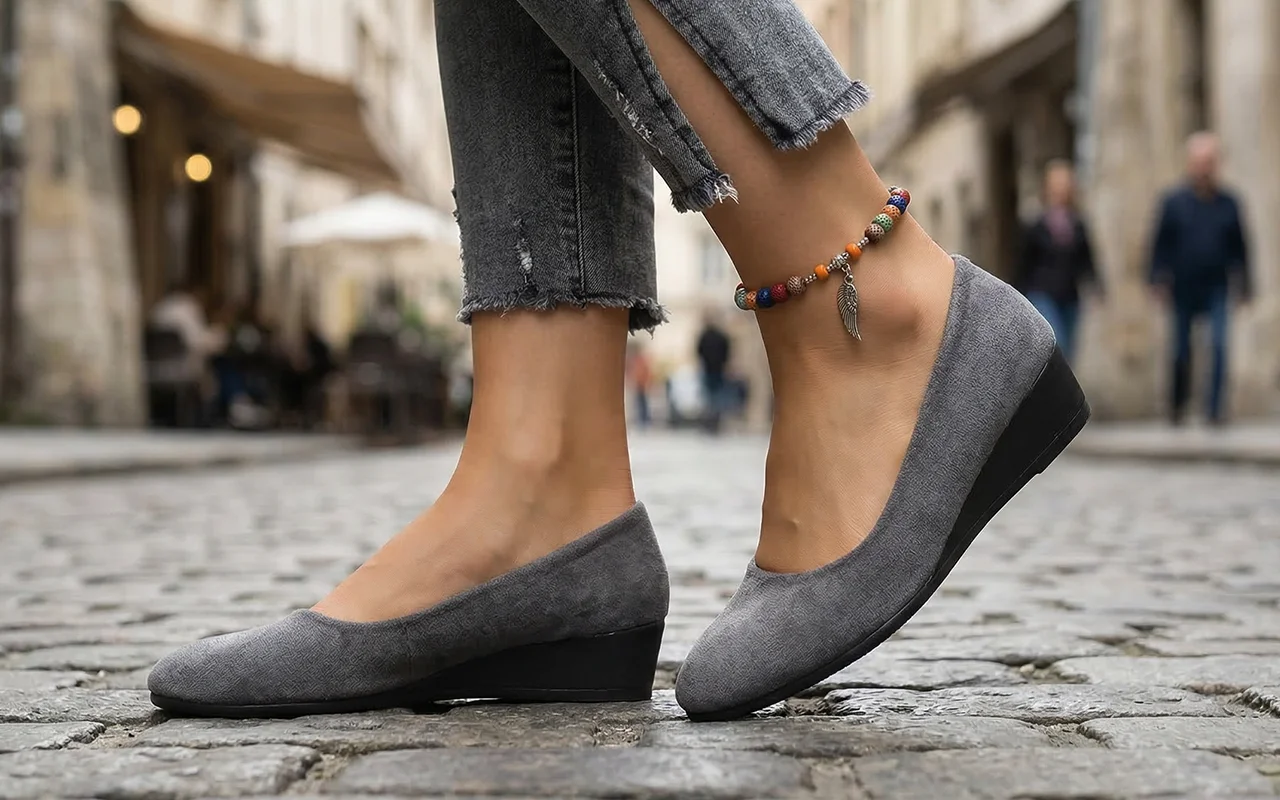 Uso estas sandálias anabela para fazer recados e depois vou direto jantar. Os meus pés continuam confortáveis, a aderência é segura em ruas molhadas e elas continuam elegantes.