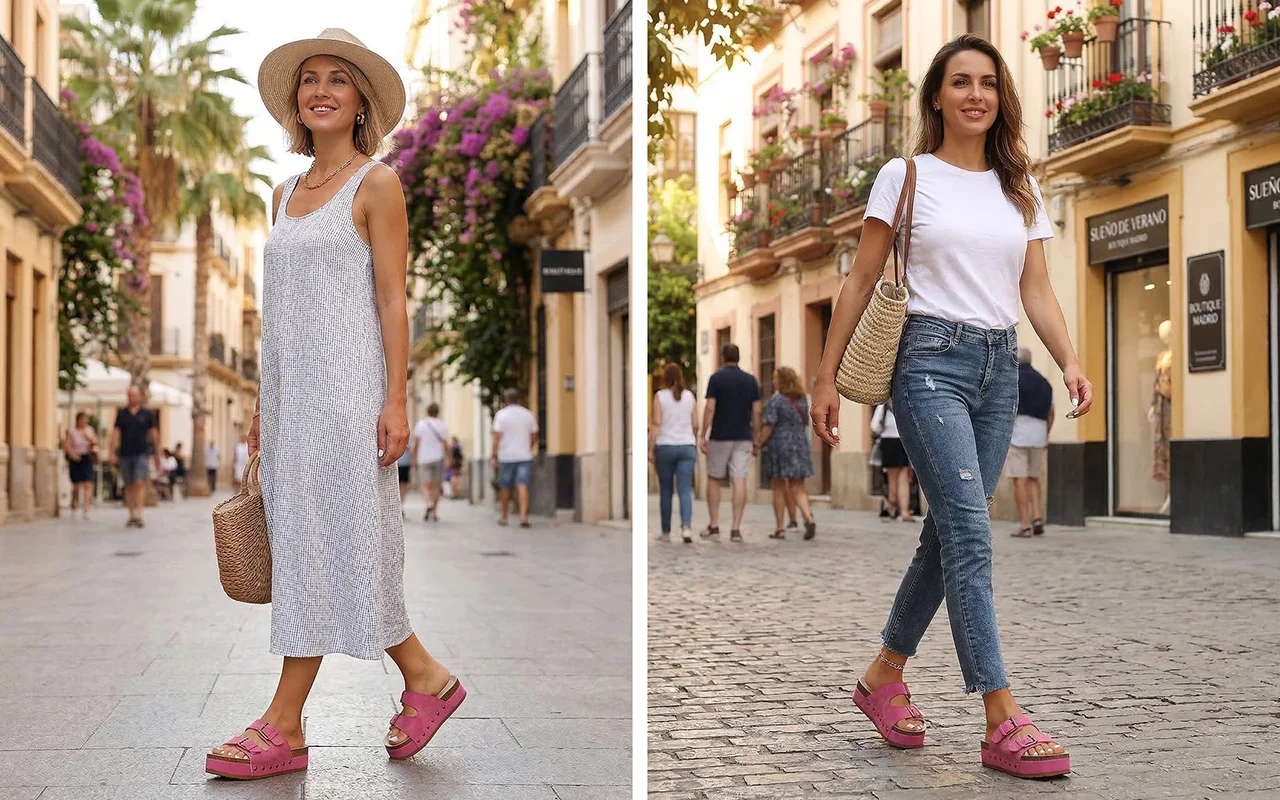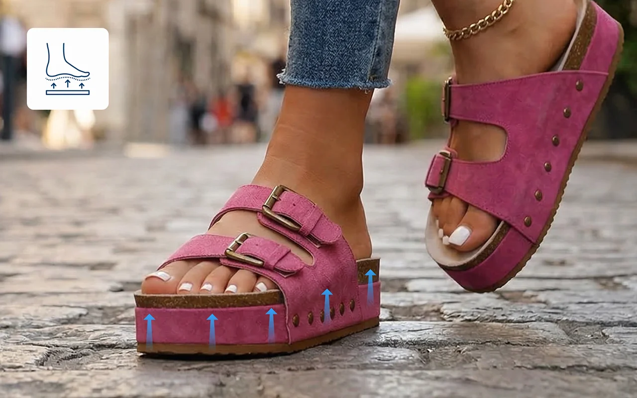 Uso estas desde os passeios com o cachorro até jantares. A plataforma é firme, não pesada, e meus dedos permanecem frescos mesmo nas tardes bem quentes.