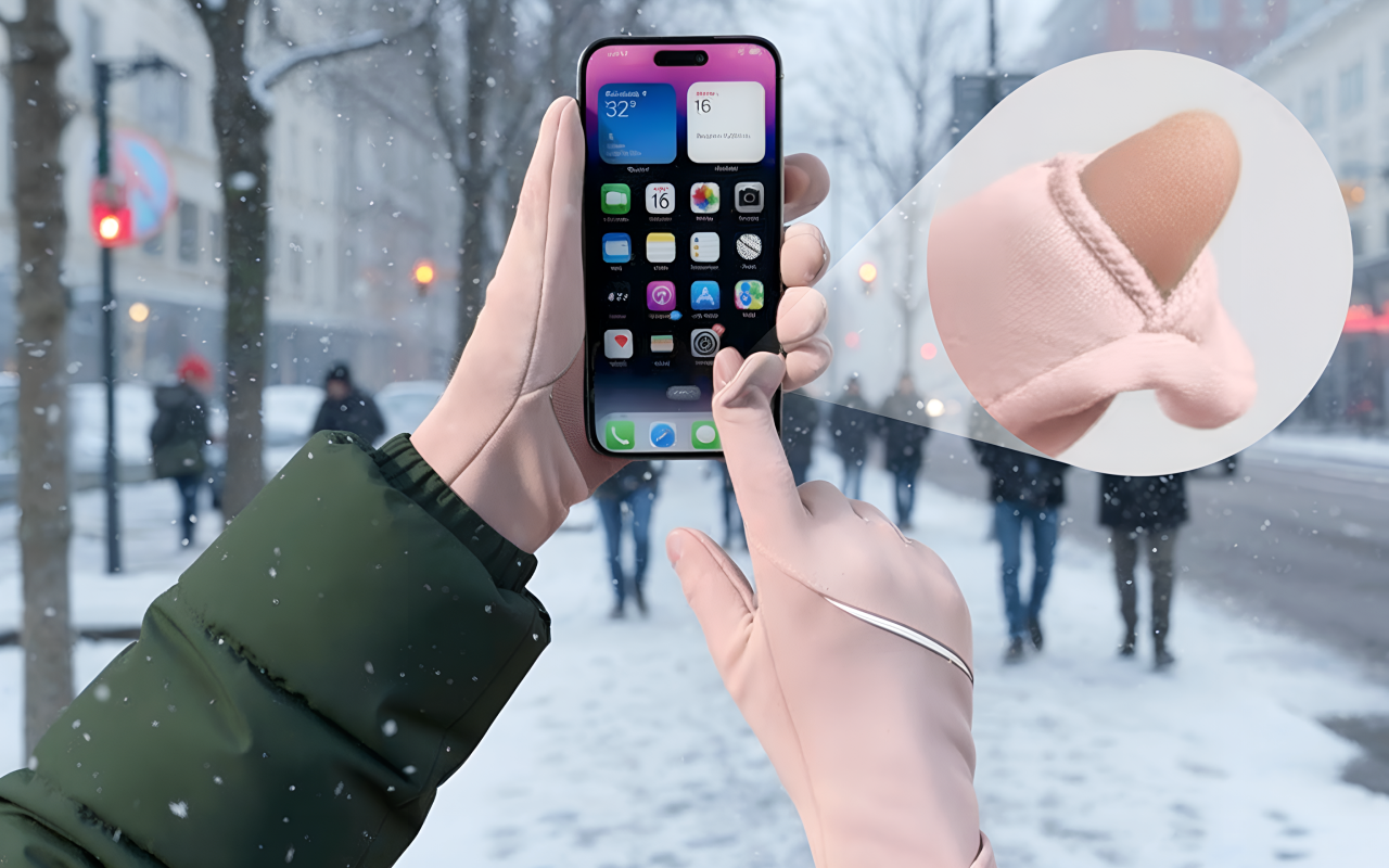 Posso deslizar no meu celular do lado de fora sem tirar as luvas. Meus dedos nunca ficam frios, mesmo quando estou na neve por horas.