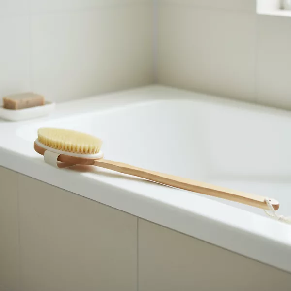 Adoro como a escova de banho facilita lavar minhas costas. Agora consigo realmente alcançar todos os lugares! É macia e delicada na minha pele.