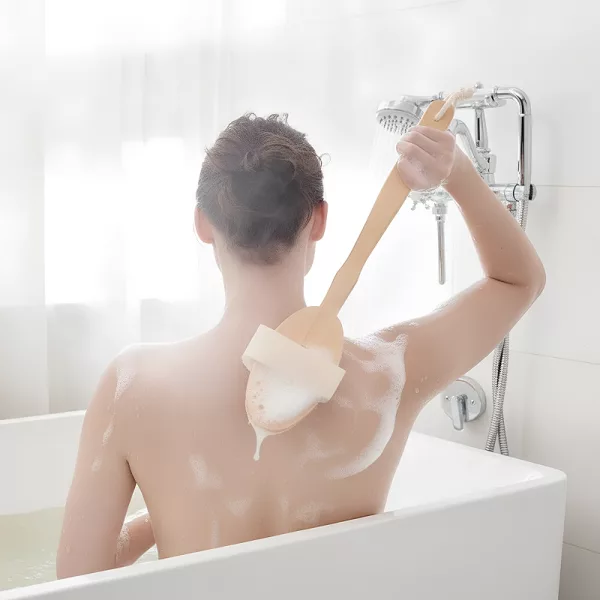 Nunca mais torça ou estique o corpo no banho. O cabo longo permite limpar as costas sem dor ou dificuldade.