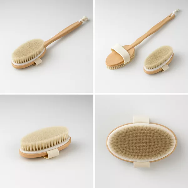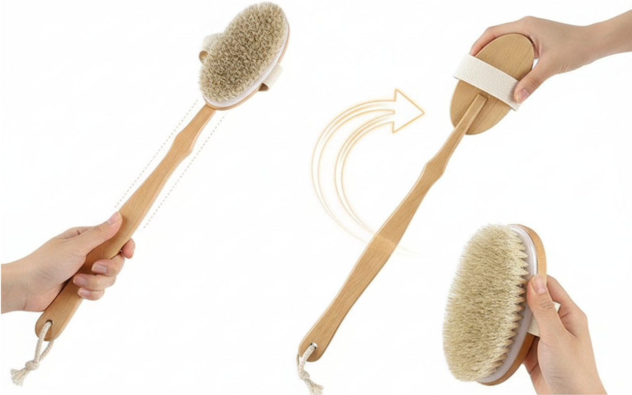 Depois que comecei a usar esta escova de madeira, minha pele ficou mais macia. Consigo alcançar todas as partes que antes não conseguia e é ótimo após esportes.
