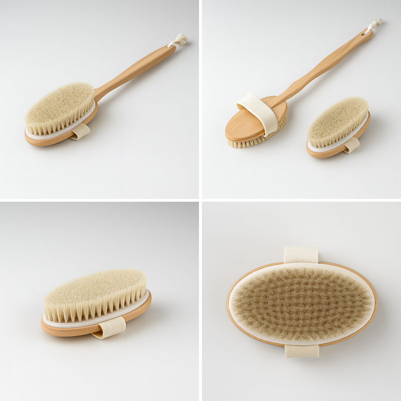 Gosto de como as cerdas naturais são melhores do que as de plástico. Uso com ou sem o cabo, dependendo do que preciso. Meus braços e costas agradecem!