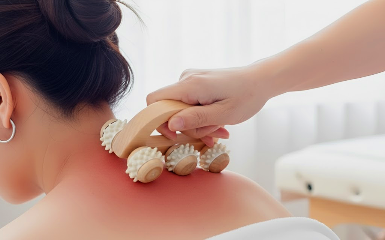 A construção em madeira ecológica garante que nenhum plástico agressivo toque na pele. As pontas de silicone suaves tornam cada sessão relaxante e segura.