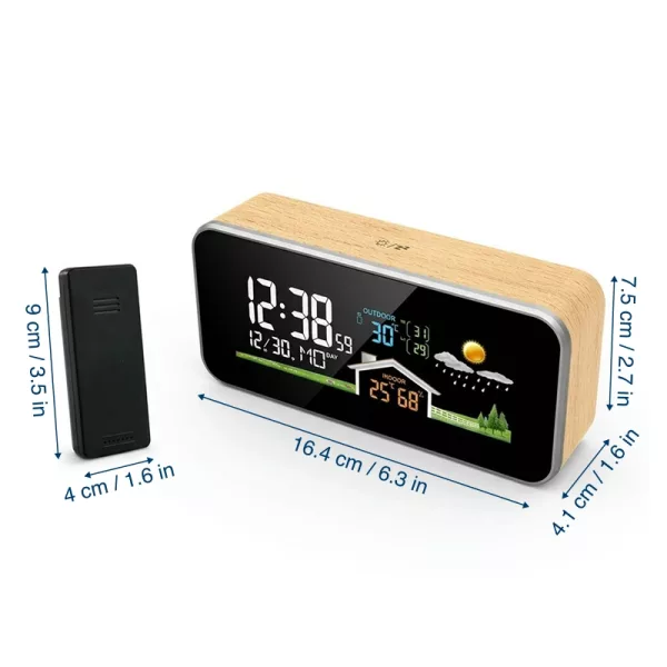 Tenha tranquilidade ao conhecer as condições exatas do seu ambiente. A estação meteorológica Ortorex facilita ver a temperatura e a umidade num relance. O ecrã brilhante ajuda a ler a hora ou a previsão sem precisar levantar-se. O elegante estilo em madeira encaixa-se na perfeição em qualquer espaço moderno.